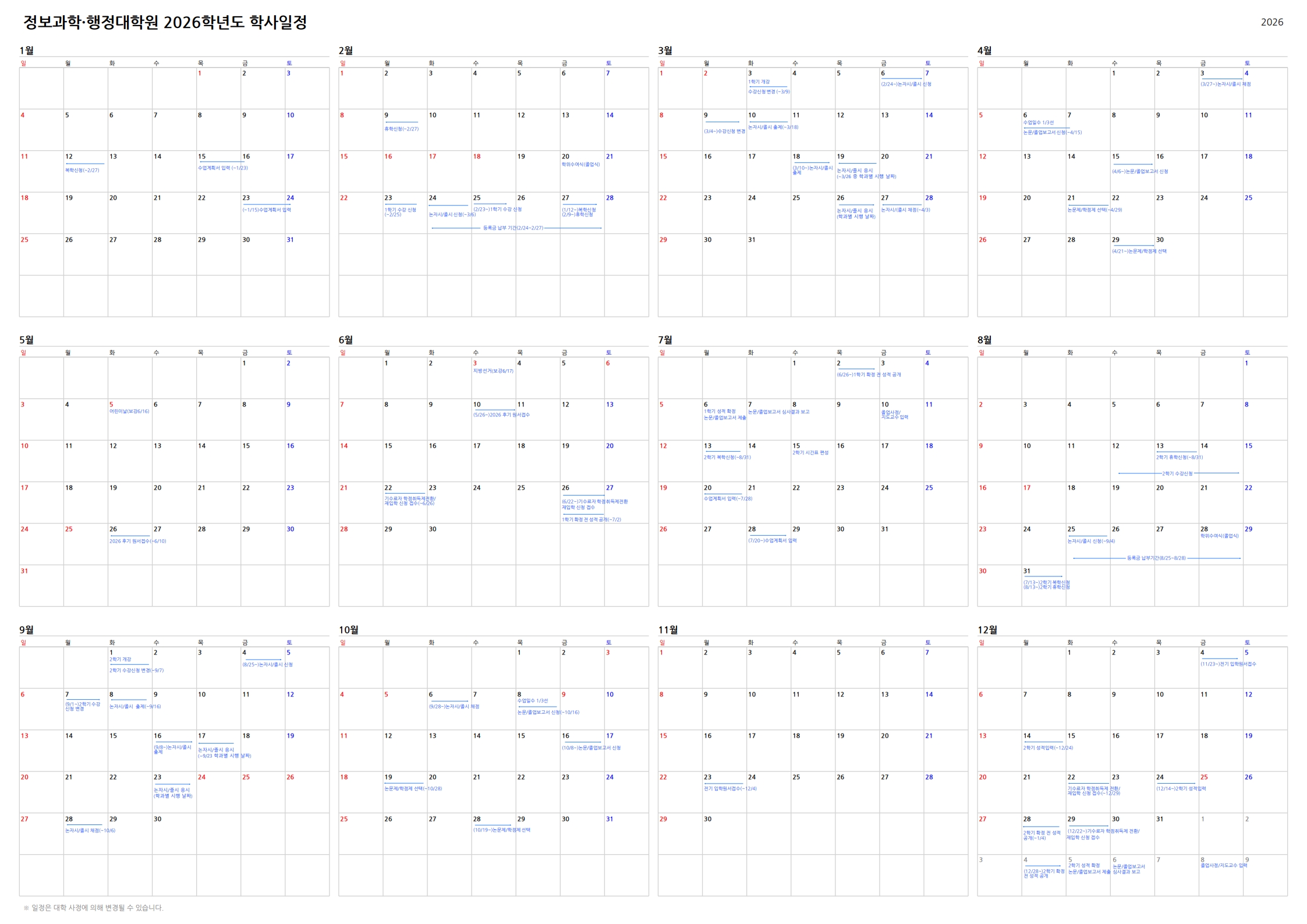 [공지] 2026학년도 정보과학·행정대학원 학사일정